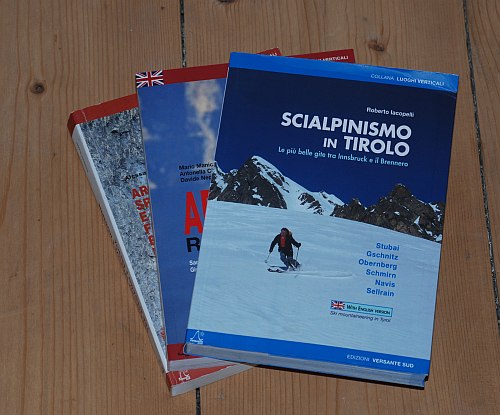 První z  knih, o kterých bych se chtěl zmínit, hlavně proto, že je to novinka tohoto podzimu, je kniha pro skialpinisty. Jmenuje se Skialpinismus v Tyrolsku (Scialpinismo in Tirolo) a je to podle mého názoru skutečně dobře zpracovaný průvodce. Průvodce je dvoujazyčný a najdete zde 67 tras v oblasti od Insbrucku k Brenneru.