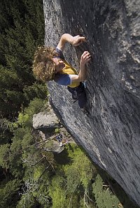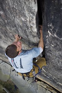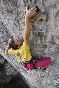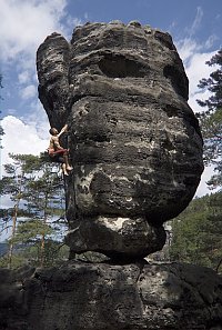 S jistým odstupem se udiveně ohlížím zpět za trochu podivným obdobím, v němž jsem upozadil vlastní výkony, ač jsem byl mnohokrát v Sasku. Úplně bez lezení jsem ale neživořil. Ono také nejde nafotit lezecké fotografie bez lezení. Jen se přitom jaksi změní přístup ke skalám. Často bylo třeba Žofinovi někam pověsit lano, vylézt, kam si poručil, a přitom se příliš nezdržovat stylem nebo potěchou z pohybu. Vlastně jsem si zalezl až dost. Nahoru, dolů, odjistit nebo být jištěn, tak nějak to vypadalo. Překvapivé bylo zjištění, že když má člověk za úkol udělat vše pro co nejlepší záběr, stává se mu cesta jen prostředkem, nikoliv cílem. Respekt z ní se přitom úplně vytrácí. Přistihl jsem se, že lítám po Sasku a beze strachu se vrhám do všeho, co bylo třeba zdolat. Jen v té Kamikaze jsem těch osm metrů na kruhem opravdu pospíchal. A ani Žofin tak nedokázal dostatečně zaostřit můj tryskolez (viz str. 220). Naproti tomu Direkte Superlative, na kterou bych jinak šel se sváteční náladou, se skutečně stala jen nepatrně odporujícím věšákem na lano. A i jiné cesty. Bohužel. Byl jsem dlouhá léta zvyklý jezdit do Saska trochu jako do chrámu a teď jsem si připadal spíš jako na staveništi. Ale udělal jsem i jednu užitečnou zkušenost. Každý rok na jaře jsem se vždy vrhal do nových neznámých cest. Sezóny jsou krátké, nepřelezených cest spousty a zdržovat se přelézáním těch již dobitých mi přišlo jako plýtvání časem. Mimo jiné to ale znamenalo si budovat sebevědomí vždy od začátku. Vylezu Xa? Můžu zkusit Xb? Marné pokusy bez úspěchu mne vždy vrhaly zpět. Nevím, jak to vnímají ostatní, ale mně se po pár neúspěších moc dobře neleze. A že v neznámých cestách není k neúspěchu daleko, je nasnadě. Letos jsem pochopil, že jsem to dělal špatně. Díly knize. Rázem jsem se ocital v cestách, které jsem již z dřívějška znal, a zjišťoval, že mi jejich znalost z dřívějška umožňuje přelézat je bez větších obtíží. Proto už teď vím, že si zjara některé z nich opět s chutí zopakuji.