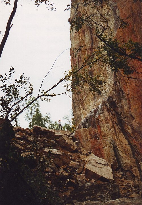 A teprve v této době, si myslím, zde začínají aktivitu bratří Reschové . A to už je úplně jiná historie . Ti zde udělali řadu dalších cest , které všechny zřejmě spadly s odlomem v r. 1998 . Tuhle další fázi by museli popsat oni .