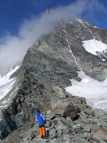 Po hřebínku Luisengrat jsme došli skoro až k nástupu na Stüdlgrat, s očima naplněnýma posvátnou bázní před stále úctyhodněji se tyčící Horou.