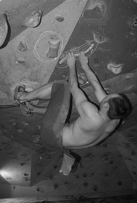 V první vlně se diváci natolik nechali unést atmosférou a výkony lezců, že zapomněli vytáhnout objektivy a zdokumentovat alespoň vítězné překližkové tažení v kategorii MUŽI, proto jsme si dovolili podobiznu vítěze doplnit z jeho vlastního alba (rockstars.cz).