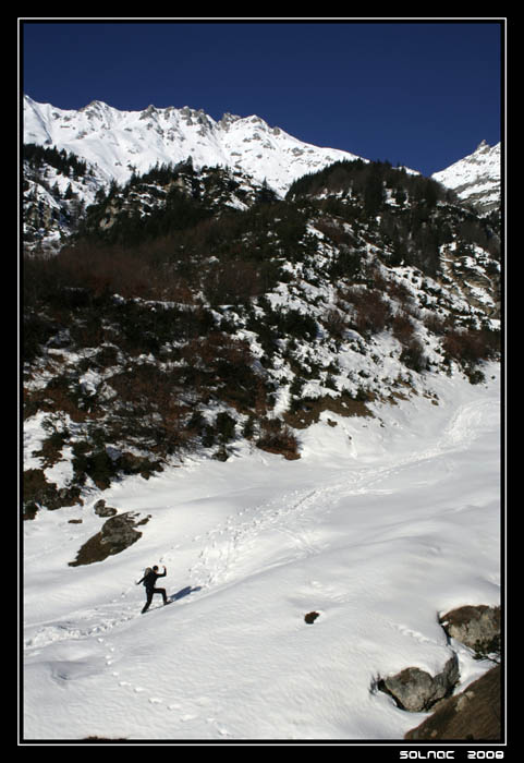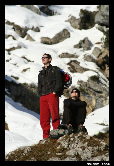 Každopádně pozitivní bylo, že napadalo jen pouhých deset centimetrů. Kamarádi mě v tom nenechali samotného a pomohli mi. Za to jim upřímně moc děkuji! Museli jsme důkladně prohledat přibližně čtyři sta metrů čtverečních. Každému při tom mrzli nohy a ruce, byli jsme mokří od sněhu a zároveň zpocení z námahy. Snad nejhorší možná kombinace. Navýšil jsem motivaci z původního piva na flašku Jagermeistera a po téměř dvouhodinovém trápení Milan vykřikl: „:Mám ho!“ Na vítězný pokřik jsem se tak zoufale těšil! V duchu si říkám: „Pěkně, panáčku, a teď to přelez. Ukaž sám sobě, co je v tobě. Máš za sebou čtyři náročné dny v horách, jsi unavený, zmrzlý a za chvíli bude tma! Dnes máš poslední možnost to přelézt.“ Věděl jsem, že mám energie sotva na jeden kvalitní pokus. Zase těch šedesát kroků a vyletět můžu už v prvním.
