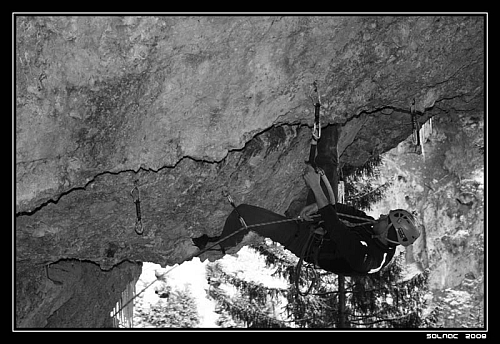 Lezlo se mi parádně. Kruté fixy, nekonečná vytrvalost, maximální koncentrace… Daří se mi krok po kroku dolézt na konec stropu, přehoupnout se přes hranu, a s novým softwarem opatrně přebušit nejisté lišťičky. Vybuchl jsem naprostou euforií, když jsem cvakl řetěz! Adrenalin mi proudil celým tělem. Předloktí bylo kvalitně natečené, ale celou tu dobu pod kontrolou.