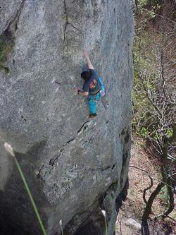 Fouká vítr, obloha modrá a my sedíme na nejvyšším vrcholu skal, zapisujeme se do vrcholových knížek na jedny z prvních stránek, prostě nádhera.Vydáváme se hledat další cesty, opět jich pár najdem a dokonce i cestu Yakuza za 7+, po krátkém shlédnutí tuto cestu dáváme dva na OS. Což při mé výkonnosti je docela nereálné, ale je prostě tak označena.