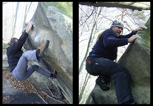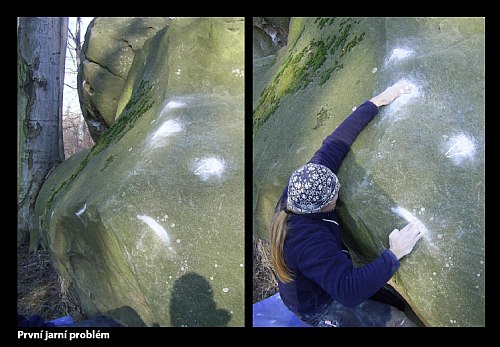 V neděli opět sluníčko vyzývalo jaro a to byl ten nejlepší impuls kdy vyjet. Do auta sem přibral kolegu z úřadu práce ať ví zač je toho loket a že bouldering je jen pro chlapy.