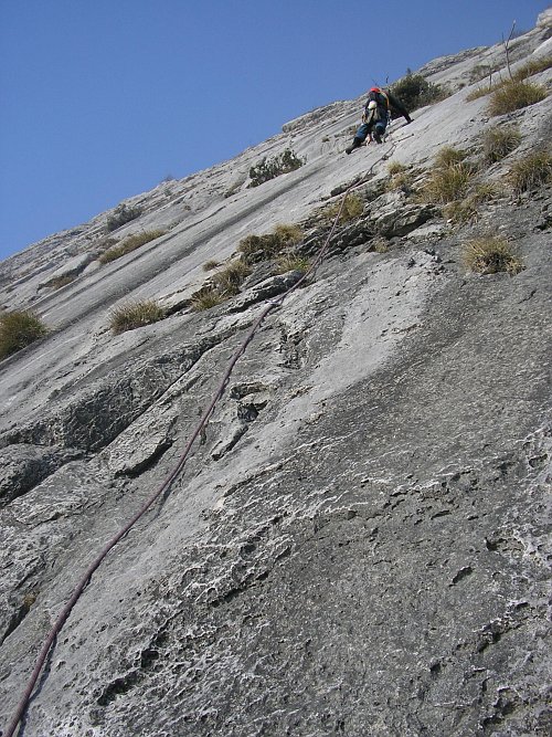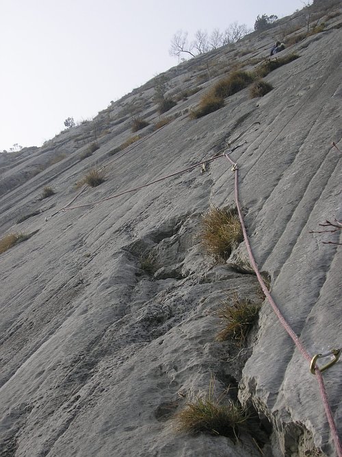 Ale když jsou volný jen víkendy, scvrkne se výběr výletů za teplem na okruh známých, lehce dostupných, blízkých, takže zprofanovaných míst. Arco! Ale když Arco, tak delší lezení a po zimě je dobrý se rozlézt v co nejmenších převisech. Takže plotny u Pietramuraty!