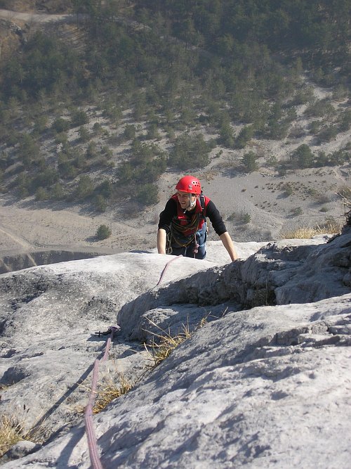 Sluneční jsou plotny proto, že jsou otočeny k jihu, jsou nad okolním lesem a terénem a i v únoru můžete obnažit svá těla a prohřát se. Parkuje se pod stěnou na parkovišti, nástup cca 5minut. Nenechávejte cenosti ani v autě, ani pod stěnou. Ital krade, vše drahocené táhněte s sebou, protože cesty Vám zaberou i několik hodin, slabším párům i celý den! Nám ukradl jen čepku od Vietnamce za 60,-, z té chytne moje vešky, a starou mikinu a zté dozajista chytne Marťasovi filcky!