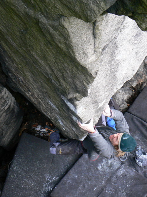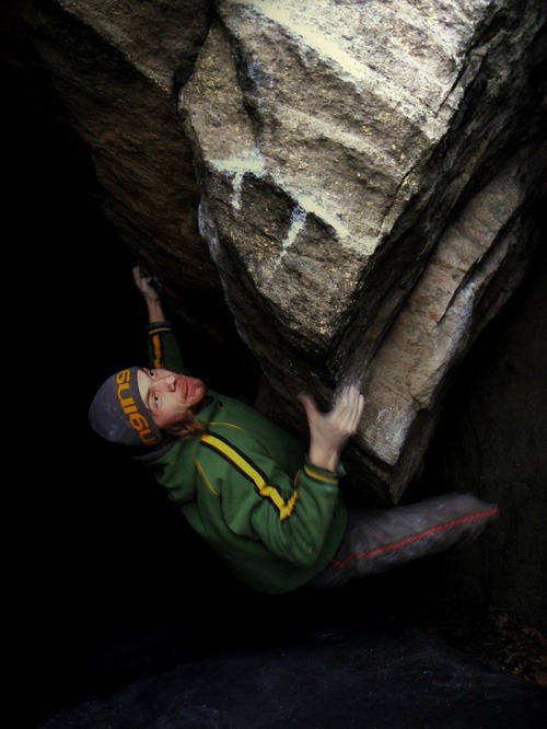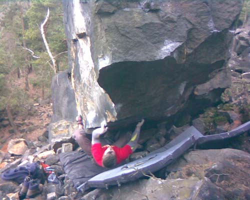 Jarda Ježek v boulderu Kýl 6C+, pod masívem Nová Bašta