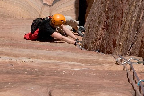Vyjma několika málo sportovních cest (viděli jsme jich asi 6) jsou tu výhradně samé klasiky po vlastním jištění. Písek je tvrdý, takže se dá jistit i železem. Není od věci dávat pozor na škorpióny, kteří se prý mohou ukrývat ve spárkách a dutinkách.