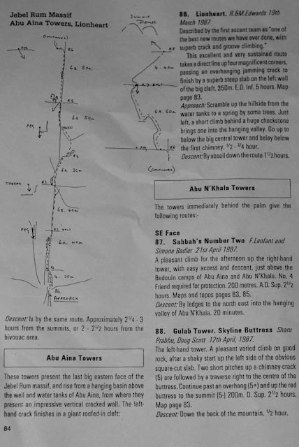 Pár užitečných informací: Ve Wadi Rum se leze od září do listopadu a od února do dubna. Jindy je buď zima a chumelí anebo naopak šílené vedro. Jediný a nejlepší průvodce je od Tonyho Howarda - dá se koupit přímo ve Wadi Rum za 25 JD