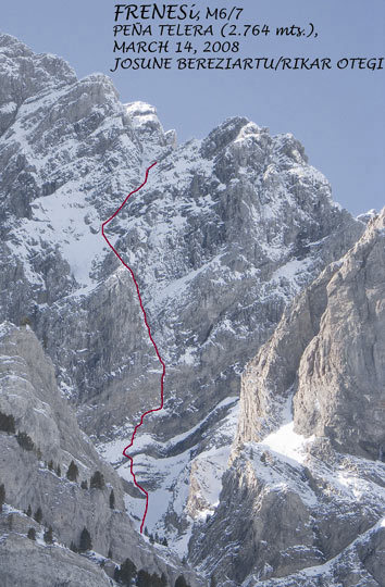 Novou cestu "Frenesi" (ED+: III/IV M6/7 R, 450m)přelezli za sedm hodin stylem OS a jen s vlastním jištěním .
