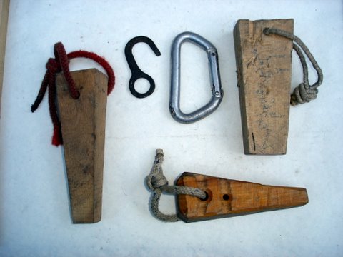 Taky jsem se trochu zařadil k výrobcům. "Svý" vklíněnce pořád používám, na účka mám pořád nástroje. Zaujal mě nákres cesty na klínu. Taky jsem kdysi použil dřevěnej klín k trochu jinýmu účelu: Polotovar klínu jsem rozštípnul v půli, vyfrézoval jsem do půlek dutinu, do který jsem vložil v pytlíku marky (samozřejmě státu NSR), pak jsem to slepil, klín dotvořil a vmísil do ostatního matroše. Mladí lezci si mohou nechat někde vysvětlit, proč jsem ty marky nevezl normálně v peněžence.