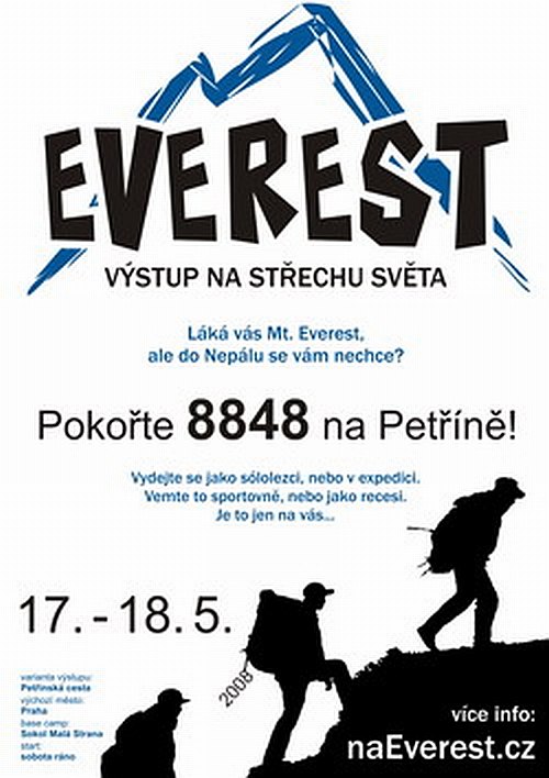 Pro všechny sportovce či nadšence se totiž v květnu stane nejvyšší horou světa pražský Petřín. A abyste Everest alias Petřín dobyli, budete na něj muset jen několikrát vystoupit a zase slézt – a to přibližně osmdesátkrát! Přijďte na vlastní kůži zažít, jaké to je šplhat k takovým magickým výšinám.