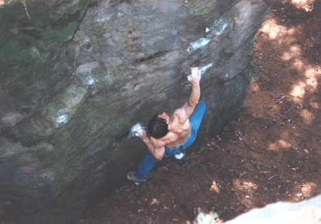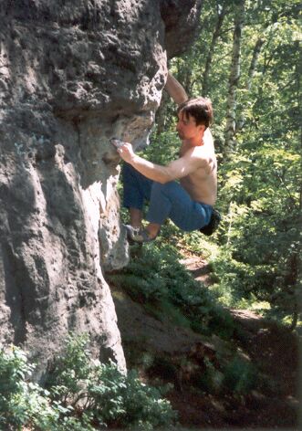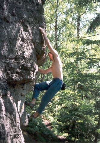 Proč proboha zase to mádžo???? Vždyť to na písek zásadně nepatří!!!!!!! Tim že jsi zde zveřejnil své jinak pěkné fotky právě s tímto pytlíkem, tak právě tímto krokem jsi všechny budoucí potencionální zájemce o tuto oblast nasměroval špatným směrem, což spočívá v postupné destrukce této jinak pěkné buldršutroblasti (v Praze na Petříně je něco podobnýho a MG se tam taky nesmí!!!!). Vím že mádžo k tomuto druhu lezení neodmyslitelně patří a já bych zde skutečně velmi nerad rozpoutal diskuzi na téma "mádžo a etika lezení na našich sandstones". Na to má určitě každý svůj názor a já bych tu fakt nechtěl započat tuto diskuzi. Berte to jen jako názor, nebo komentář.Howgh