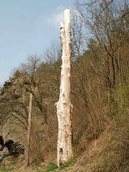 Nemohu se na tomto místě nezmínit o místní kuriozitě. Tou je starý suchý kmen u cesty, hned vedle skály. Osazen nýty a slaněním skýtá možnost neobvyklého polezení.