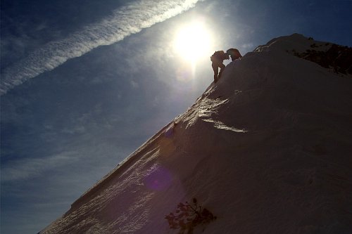 Druhá, strmější část hřebene vyžadovala použití maček