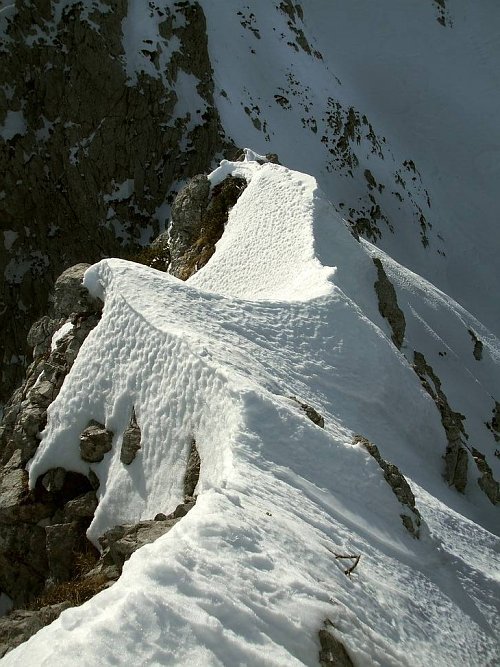Travers návějí na hřebeni