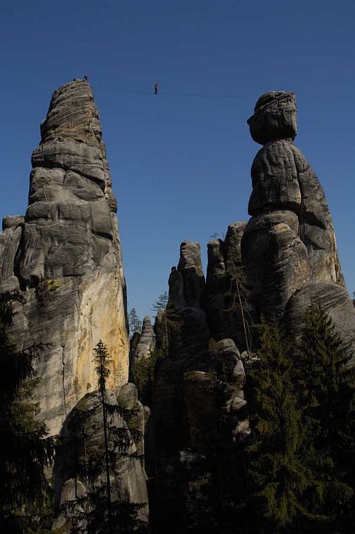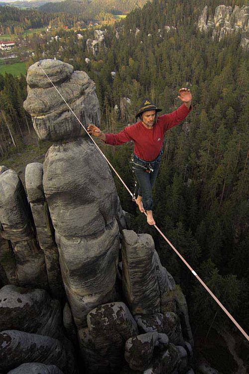 Heinz Zak na highline na Starostovi a Starostové, Adršpach