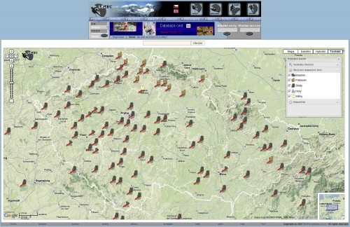 Kdysi populární plastické mapy českých pohoří se v digitální podobě přesunuly i k nám. V pravém horním rohu mapy můžete nový podklad aktivovat tlačítkem "Terénní".