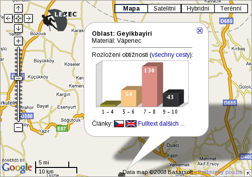 Vlaječky symbolizují jazykové mutace a odkaz na fulltext u oblasti Geyikbayiri
