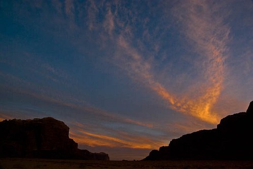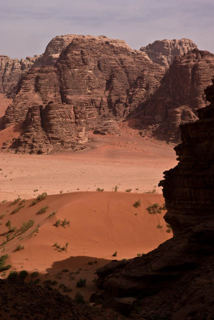 1 . den letíme do Tel Avivu, pákistánské vízum v mém cestovním pasu je vstupenkou k dvouhodinovému interview s panem důležitým, z letiště na autobus, za 5 h jsme v Eilatu a tu jejich svatou zemi opět opouštíme. Na severu Izraele hezky voní četná květena a po celé zemi sexy vojandy v maskáčích s kvérem. V mezihraničním prostoru čekáme skoro hodinu, snad Viktor příště neztratí lísteček s nějakým důležitým štemplem (řeší to působením svého osobního šarmu na službu konající pohraniční sexy policistku) a za chvíli jsme v Jordánsku. Z Aqaby to je do Wadi Rum něco přes hodinu, v podvečer stíháme koupit průvodčíka, vylézt úžasnou spáru Troubadour (5+, 3, 6a+) a při slaňování zaseknout lano.