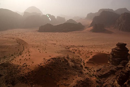 Wadi Rum, to je také boření se po kotníky do horkého červeného písku, ranní death metalové chroptění vokalistů The Camels of Jordan, neuhasitelná žízeň a proměnlivá kvalita pískovce od velkých ulomsiměchytů – pověstných mushrooms, přes superpevné lišty až po vertikální pískoviště. A beduíni.