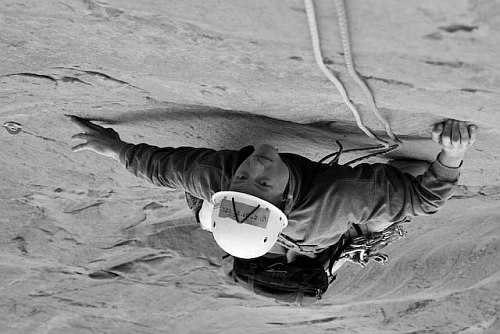 Pak jde do akce drtič Viktor, 4. délka pořád po dobrých chytech, v 5. délce je šílený 15m boulder po drobných chytech, co jsou trošku dál od sebe a traverz ke štandu. Opět střídáme, tahám pohodovou 6. délku, 7. délka je orientačně náročná s hezkými labákovskými odlezy typu 12m nad bh. V 8. délce hezké technické lezení po malých a na závěr šílený dach, kterého se bojím, jak čert kříže, protože to neumím lézt, hodně drtím a dávám na rozdíl od Viktora, který se v tom na druhém s baťohem znuděně prochází a leze to s prstem v nose, proto bude tahat 9. délku, což je parádní lezení v téměř svislé stěně a celá délka je jeden dlouhý boulder po nepatrných oblinkách a šílené natahováky. I s baťohem se mi to daří přelézt čistě a tak mám tu čest tahat 10. délku. Klíčová jsou dvě místa, první je tzv. kamínkový boulder (nohy v kolmém rajbáku, nabrat oblinu a přidržet centimetrový křemen nalevo, vysoký krok a navalení se na 3mm kamínek u pasu, podržet oblinu u prsou a mírně dynamicky do mělké dvouprstové dírky šíleně vysoko), druhé místo je podobné, ale bez těch kamínků. Párkrát dolézám na úroveň dalšího boráku a od něj několik pěkných tlam a černé čmouhy na skále od lezeček. Nakonec to jde, nikdy bych nevěřil, že něco takového vylezu. Poslední obtíže čekají na počátku 11. délky, ale ve srovnání s předchozí je to celkem „pohoda“. Resume: 11.5h ve stěně, 30°C ve stínu, litr vody na osobu, nahoře jsme hin, vysušením nejde plivnout ani polknout. Láhev teplé vody po slanění doslova vdechnem a v kempu hasíme dalšími 6 litry vody.