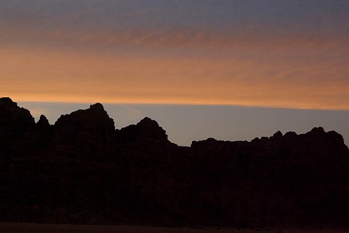 4 . den máme mít rest day. To ovšem neznamená, že budeme sedět na zadnici a popíjet kávičku, nýbrž s průvodčíkem hledáme nástupy několika cest. Na North Nassrani má vést z druhé strany (V stěna) sportovně odjištěná dvanáctidélková cesta La Guerre Sainte, nějak to nemůžem najít, míjíme impozantní snad 200m širokou a 400m vysokou mírně převislou stěnu s nějakou šílenosti se zatrhnutým lanem, pár jiných cest se nám daří najít a nakonec vlastně i La Guerre Sainte. A je to ta šílenost s visícím lanem. Dohromady máme v nohách přes 20km v měkkém písku, příští rest day budeme sedět na zadnici a popíjet kávičku. Viktor dnes nic nezapomněl:-)