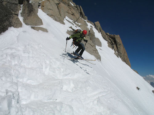 Po nezbytné aklimatizaci přicházíme na chatu Couvercle, odkud nočním nástupem dosahujeme paty kuloáru. V osm hodin ráno docházíme do sedla Col de la Grande Rocheuse, není kam spěchat, neboť se zatahuje a slunce nestíhá proměnit zmrzlý betonový sníh v přijatelný firn. V deset hodin stojíme s Márošem na vrcholu a v 11:00 se rozhodujeme pro začátek sjezdu.