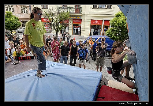 • Seriozního a osvědčeného komentátora ze všech předchozích ročníků R.T. (Rosťa Tomanec) jsme letos zalternovali daleko mladším a velice neseriozním typem jménem Paskal Nerad. Tento riskantní tah se nám vyplatil. Díky němu dostal celý závod další dimenzi a “kdo to neslyšel nepochopí” - byl prostě dobrý. Diváci přicházeli blíže k pódiu, dalo by se říci ne na bouldering, ale NA PASKALA