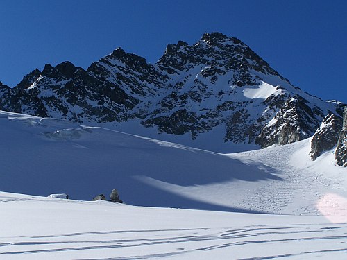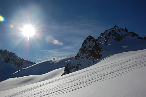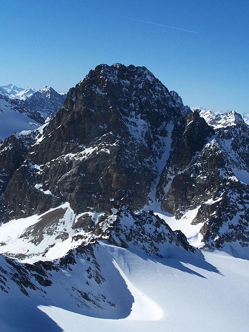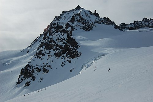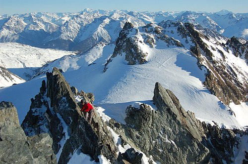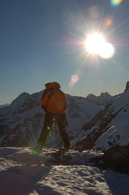 Skialpinista není ochuzen o nic méně. Ba naopak! Nekonečné množství příjemných skialpových túr, na jejichž závěru je povětšinou vždy potřeba odložit lyže a vyškrábat se na samotný vrchol. Zdejší ledovce jsou k nám přívětivé – relativně ploché a tak ochuzeny o množství rozšklebených trhlin a nebezpečné séráky. Ve švýcarské části je charakter túr trochu odlišný zejména pro větší členitost ledovců, ale o tom někdy příště. Osobní zkušenost mi chybí.