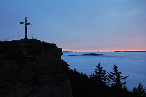 Pohoří Šumavy na německé straně, v období inverzního počasí, je ideálním místem pro lezení.