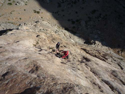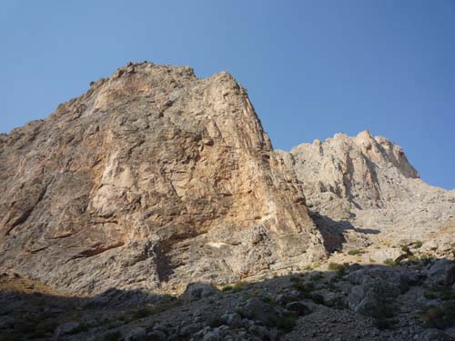 15.9. Vyrážíme za naším posledním cílem v pohoří Ala Daglar a po čtyř hodinovým pochodu  stojíme pod Parmakayou. Klasickou cestou se to dá s 80 metrovým lanem na dvě délky.