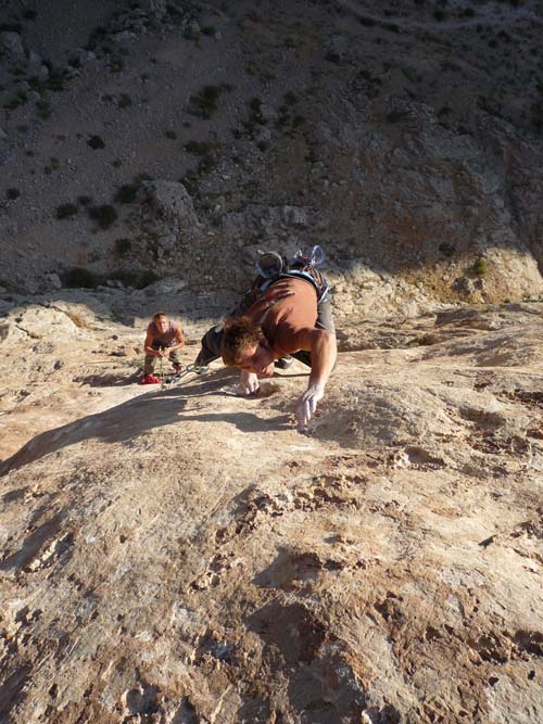 Kolik je na světě krásných míst, krásných  stěn, jasných linek, super kroků, jako by to bylo všechno daný. Užíváme si zapadajícího slunce na vrcholu, pár fotek a rychle dolů. A teď už jenom lezení, už žádné tlučení.