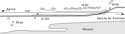 Nachází se nedaleko (3 km) od romantického historického města Namur, jímž si prorazila cestu řeka Meuse (Maas ), aby pak vyformovala na březích téměř nekonečnou řadu vápencových ostrohů a masivů.