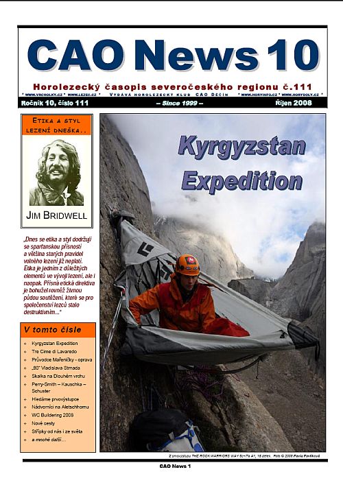 Ke stažení je tu další - říjnové číslo horolezeckého měsíčníku severočeského regionu CAO News 10 / 2008.