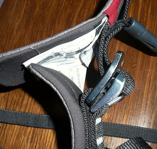 Při úplném dotažení přezky překážejí instruktážní „hadříky“