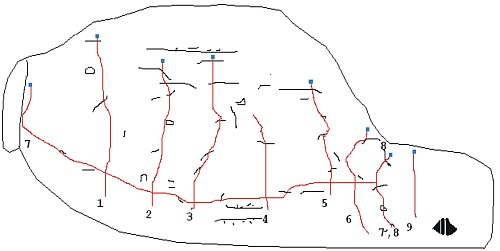 1. ??? - Úplně vlevo za hranou Plotny je smyčka a pak borhák už v plotně, více informací nemám.