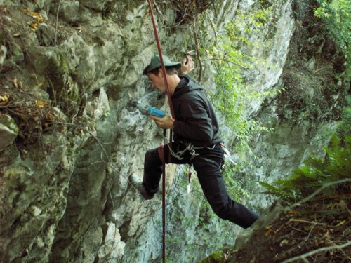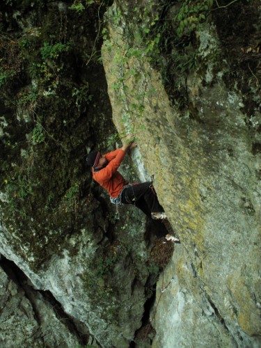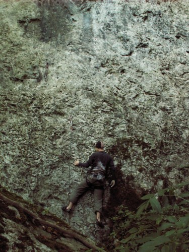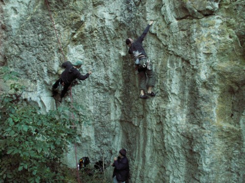 My však zamíříme výše, a to přímo po stezce (vlevo od stěny Vedle propadání) vedoucí nad Rudické propadání, po pravé straně mineme stěnu s projekty a ocitneme se v přírodním amfiteátru, kde se letos několik lezců trochu realizovalo (přístup je možný i seshora po louce z vesnice). No a než vyjde nový průvodce po Moravě, tak se třeba někomu budou hodit následující informace...
