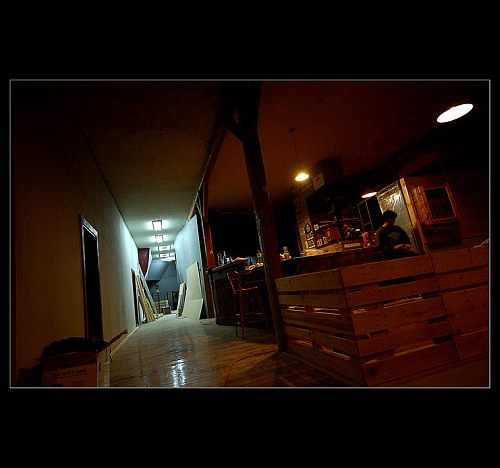 A co Vás čeká uvnitř? Nejprve smrtící točité schodiště, kterým v plujete přímo doprostřed baru. Ten má zatím kapacitu dvaceti sedících osob, intenzivně ale pracujeme na jeho rozšíření o dalších zhruba dvacet míst. Pro ty z vás, kteří budou využívat především tuto část, je asi podstatná informace, že zde najdete točenou desítku Březňák a polotmavou třináctku Primátor a potom spoustu speciálů od Primátora, včetně populární čtyřiadvacítky. Lidé jako já, co pivo nemusí snad potěší rozlévaný Cabernet-Syrah od J.P.Chenet a jihoafrický Chenin Blanc. Kdo bude chtít rovnou celou láhev, bude mít možnost vybrat si z kompletní nabídky Velkých Žernosek. Ve zkratce pak káva Lucaffé, juice Relax, ionťáky, Primátorovy limonády a snad i mléčné koktejly. Koho přepadne hlad, tomu zapečeme toast nebo bagetku, možná dojde i na něco sladkého.