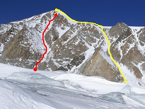 Už cesta pod kopec je malým dobrodružstvím, kde je potřeba si na 250 km najmout ruský legendární stroj UAZ i s řidičem, neboť v Mongolsku cesty ani dobré mapy neexistují. To, že řidič během jízdy pije vodku a občas zvrací, je zde zřejmě zcela normální. Od místa výsadku to jsou dva dny cesty k ledovci a další den skrze ledovec, který jsme až do večera prošlapávali třiceti cm nového sněhu, jenž rafinovaně zakrýval všechny trhliny. Kvůli větru jsme postavili stan uprostřed trhlin a seráků, které poskytovali alespoň trochu závětří. V noci se teplota snížila na – 30 až – 40°C. Všude okolo nás byla spousta krásných kopců, jejichž jména zná jen pár místních a tak jsme si to tu pojmenovali sami podle námi známých kopců. Díky tomu mohl být Everest hned vedle Eigeru, za ním Gerlach a naproti Lissklam i s malým Matterhornem, v zadu pak dokonce Pumori.