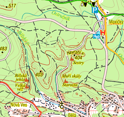 Věže skalní oblasti severně od městské čtvrti Děčín Bělá se nacházejí ve dvou údolích, které se od S a SZ sbíhají u kostela v Bělé (konečná stanice městské hromadné dopravy). Vhodný terén k výcviku začátečníků. Pěkné výstupy na pevné skále zde naleznou i ostatní lezci. Lezecky nejzajímavější jsou věže ve skupině skal Sester.