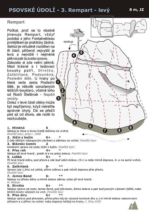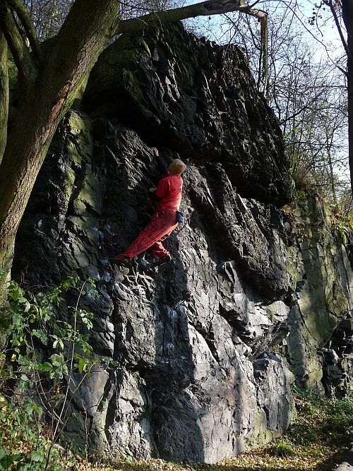 Najdete zde i oblíbený traverz a několik boulder traverzů po označených chytech.