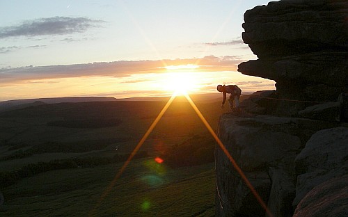 Odpoledne v 5 hodin zaléhám ve spacáku v Robin Hoodově jeskyni ve Stanage, naprosto mrtvej po dvou dnech téměř nepřetržitého běhání s těžkým batohem a bouldrováním.  Nikde ani živáčka, holt večer se blíží a já si vysoko nad okolní krajinou vychutnávám tu romantiku.
