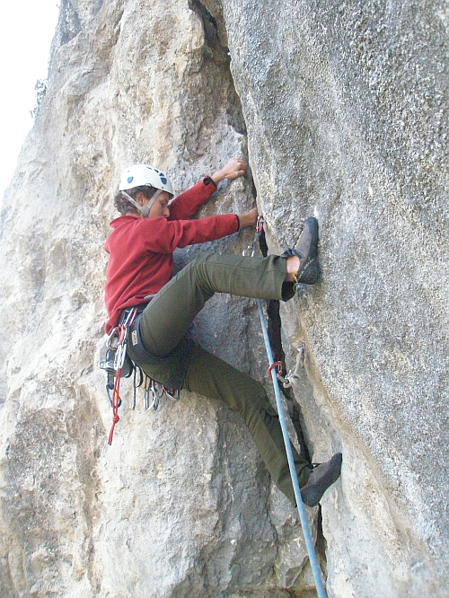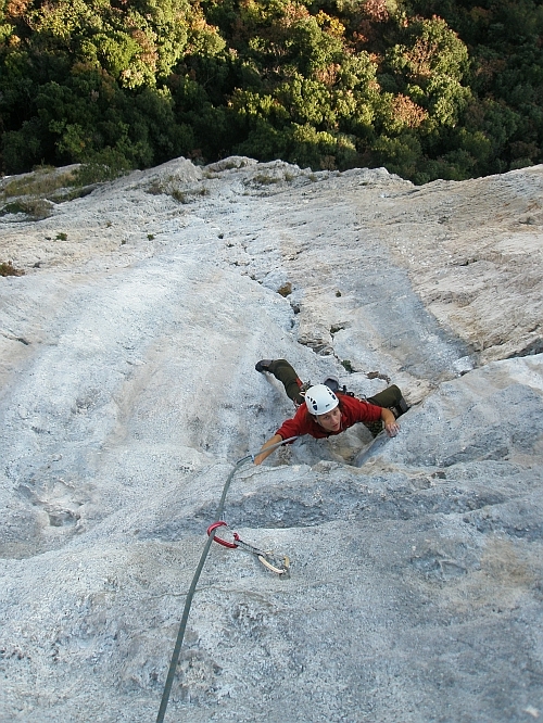 Perigeo 6c opět pěkné technické lezení v mírně převislém neolezeném vápenci