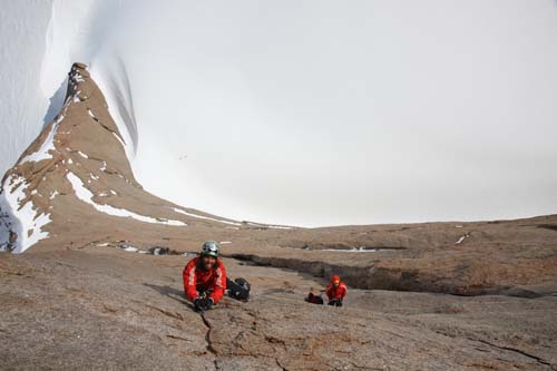Nejdříve trio udělalo novou cestu v 750 metrů vysoké západní stěně Holtanna -“Ice Age” (24 délek, 750m, 7+ UIAA, A4). Bohužel na volný přeleze všech délek museli kvůli extrémně mrazivým teplotám, které dosahovaly -20°C někdy dokonce až -50°C , zapomenout.