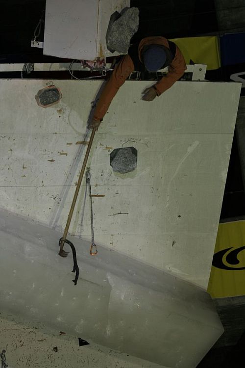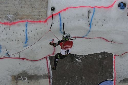 Libor: Podařilo se mi zblbnout několik lidí, a to šéfa firmy GMS Composites Petra Velka a Zdenka Urbánka z Bufa, kteří podle mých představ vyrobili Lucce drytoolové nádobíčko, které bylo nejlehčí v SP. Cepín je Nomic od Petzla výrazně upravenej karbonem. Hroty jsem upravil doma flexou. Geometrie přebroušení hrotů je moje tajemství a setsakra na tom záleží. I vítěž SP Markus Bendler mi hroty pochválil.