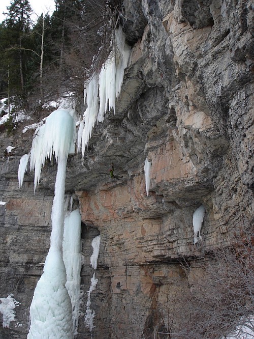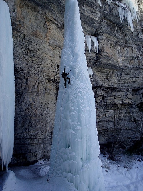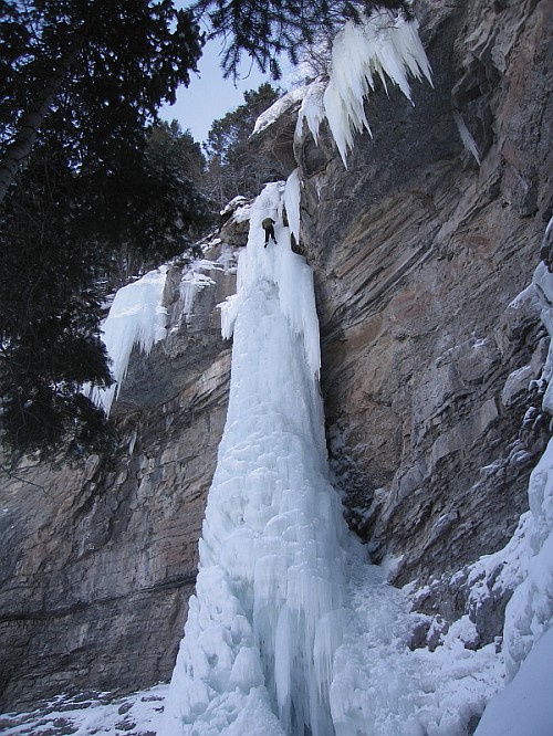tradici. V roce 1994 zde vylezl Jeff Lowe cestu Octopussy M8, která byla svého času nejtěžší mixovou cestou na světě. Dodnes je odjištěná skobami, které vtloukl Jeff. Takže doporučují nepadat. O několik let později zde vylezl Will Gatt cestu Amphibian M9 WI5+, která má dvě délky. První délka je velice populární oboltovaný mix za M8. Druhá délka je oboltovaná a částečně na vlastním. Bylo to první M9 v Americe.
