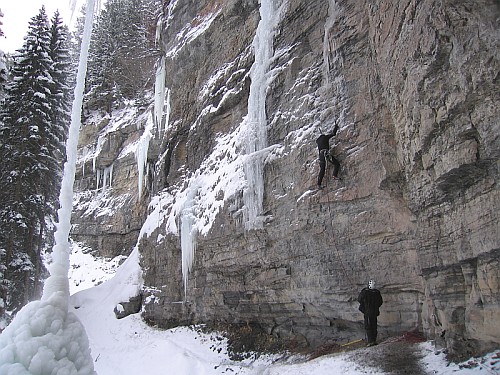 Najdete zde lezení jak ledové tak těžké mixi do klasifikace M11+. Nástup je velice krátký z parkoviště při Pump house to zabere asi 20 minut.