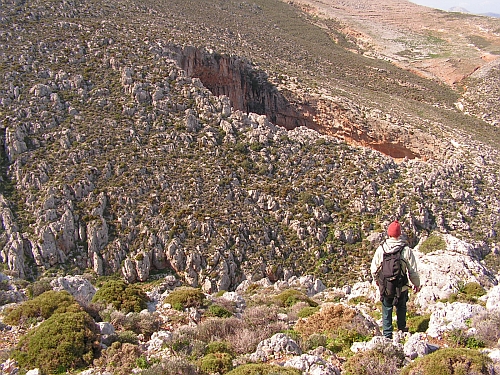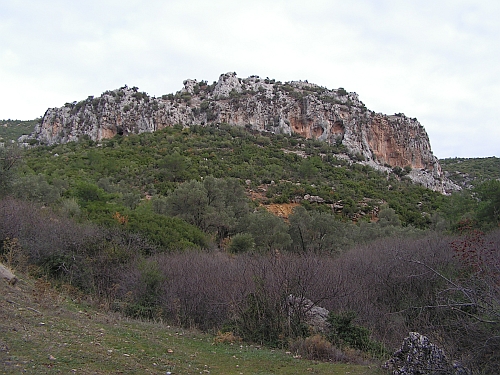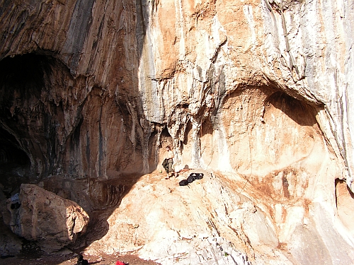 Je to vápno (dále už jen vápno). Kdysi se tu asi něco těžilo nebo co...ale spíš myslim, že je to kvůli podzemnímu zdroji vody...A co?...No ve skále je velikej portál a z něj vedou šachty dál do skály...jestli vás to láká, tak čelovku a pár baterek do kapsy...já neměl ani rezervní baterky ani nit, jen Matěje, a ten by mně do průseru spíš dostal...navíc radši lezu než prolejzám (hlavně!)....